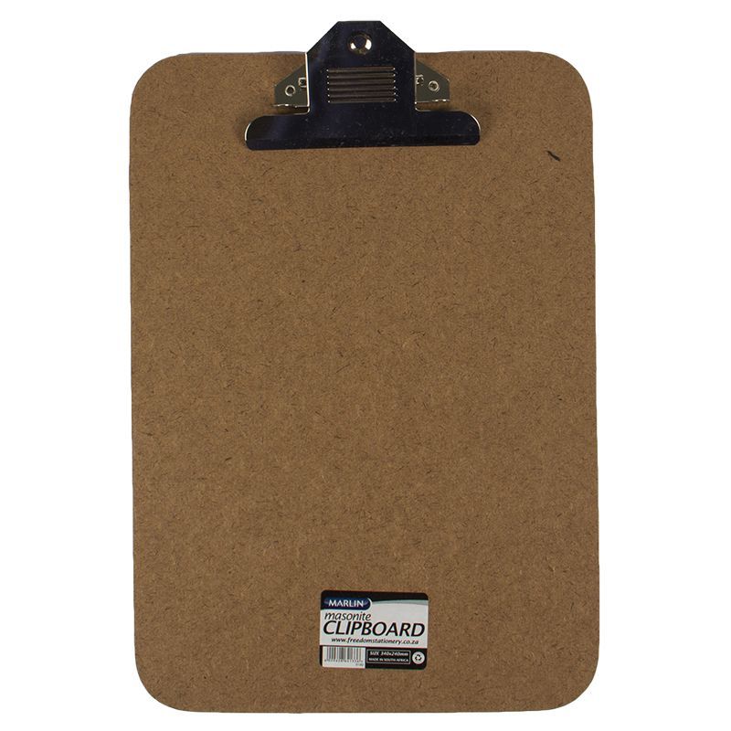 The Marlin A4 Masonite Clipboard (010D) features a durable masonite construction with a smooth, glazed front and a strong metal clip. Sized at 240mm x 340mm, it securely holds A4 papers, making it ideal for students, professionals, and outdoor use.