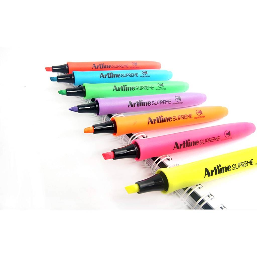 The HIGHLIGHTER SUPREME ASST DPLY 72 is a pack of 72 assorted supreme highlighters, featuring bright, fluorescent colors and a chisel tip for both broad and fine highlighting.